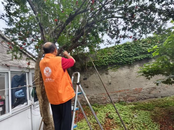 姑苏区石幢新村“居家乐”养老服务中心工作人员通过“时光家园”平台接单,帮助居民修剪果树