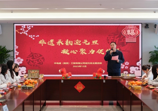 时序更替,华章日新。在2026年元旦佳节即将来临之际,为深入学习贯彻党的二十届四中全会精神,厚植中华优秀传统文化根基,进一步凝聚职工向心力、激发干事创业热情,近日,中电建(南京)工程有限公司(以下简称“南京公司”)以“非遗承韵迎元旦 凝心聚力促发展”为主题,精心策划、周密组织开展迎元旦系列活动。公司领导班子与职工齐聚一堂,活动现场氛围喜庆祥和,充分展现了新时代国企职工昂扬向上的精神风貌。