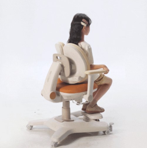 其核心的动态自适应追背系统,最大行程可达20厘米,相较于市面上普遍的0-18厘米范围,能更全面地适配3-14岁孩子的成长周期。当孩子坐下时,椅背会自动贴合背部曲线;起身时,椅背则自动复位,全程无需手动调节。