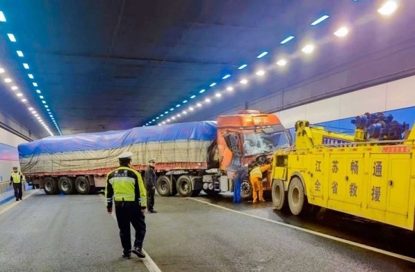 时间回溯至1月3日上午,沪宁高速苏州段指挥调度中心的电话骤然响起,“阳澄西湖隧道由西向东方向发生四辆货车追尾,其中一辆40吨重型货车横堵隧道,为尽快恢复隧道正常通行秩序,请求紧急支援!”尽管阳澄西湖隧道并非高速公路管辖范围,但“人民至上、生命至上”的坚定信念,让沪宁高速苏州管理处果断打破管辖壁垒,第一时间启动“高地联动”应急救援机制。一场跨越管辖边界、多方协同作战的紧急救援,就此火速展开。