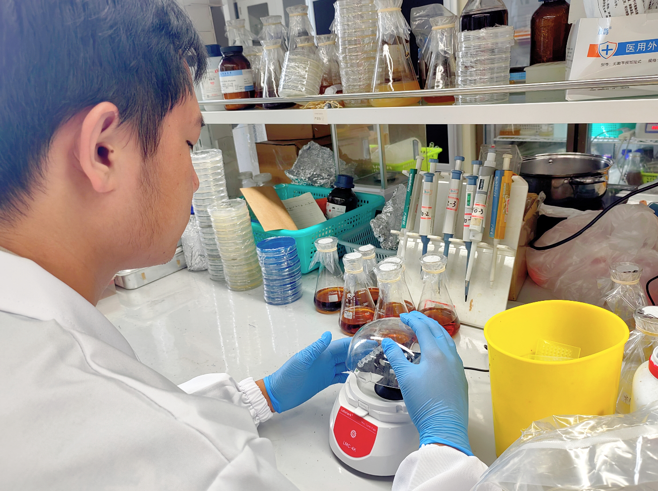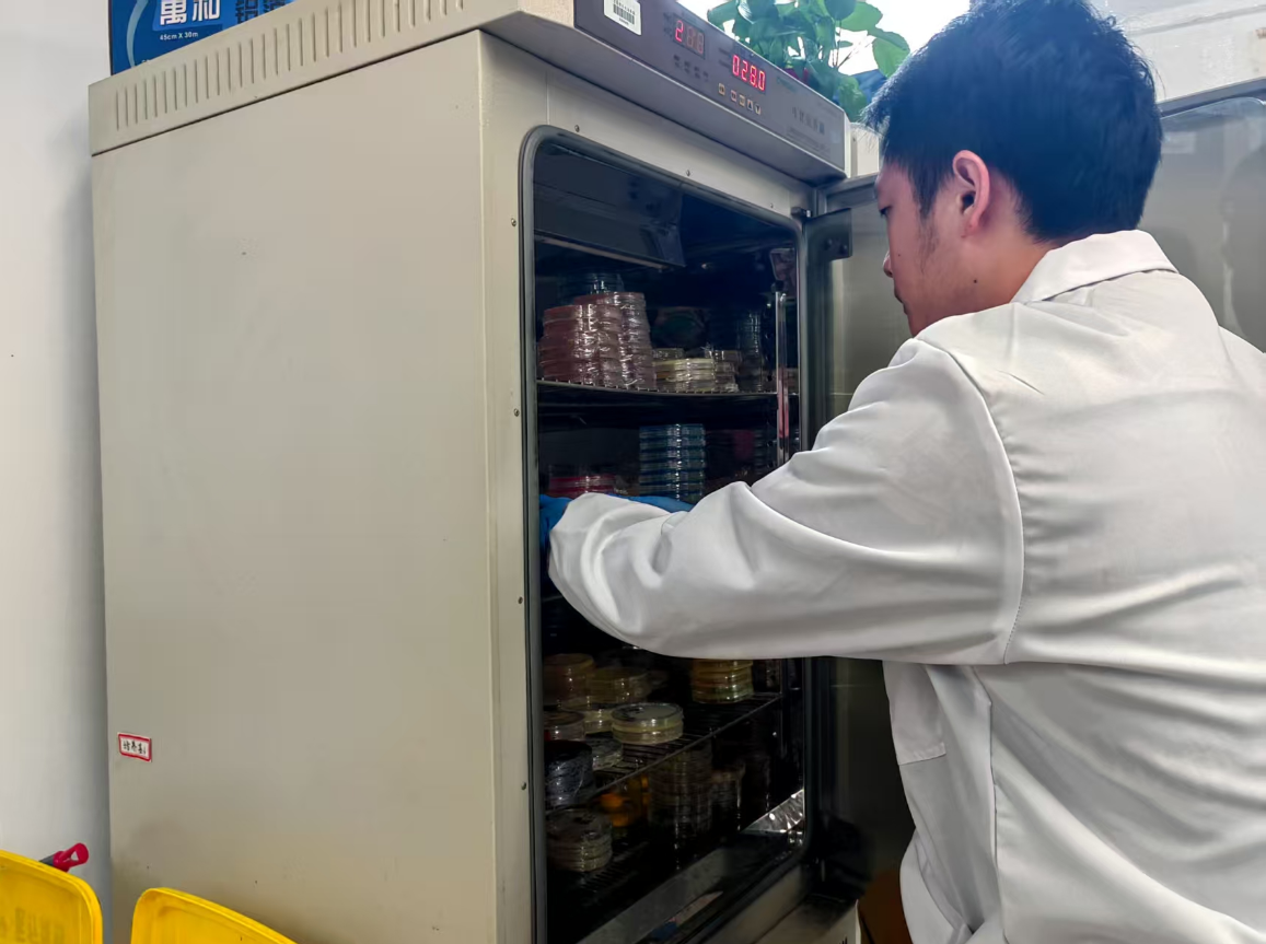四年研发实现三大技术突破。基于扎实的调研,团队构建了三大核心技术体系:基于原核系统的dsRNA低成本量产技术、独创的“碳点纳米颗粒sCDP载体技术”以及农药靶向精准系统。研发历程并非一帆风顺,从2021年选定课题,到2022年实地走访、强化实验技能,再到2023年集中调试发酵参数、革新生产工艺,团队一步步将想法变为现实。2024年,技术进入稳效提升与试产阶段,田间试验数据显示,其对作物病害的防效提升高达50%-90%。