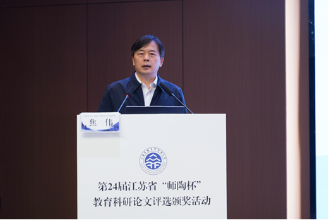 焦伟高度肯定了“师陶杯”教育科研论文评选活动的价值和意义,认为“师陶杯”始终坚守初心,以陶行知、叶圣陶等老一辈教育家的崇高精神为引领,以“深耕教育实践、普惠一线教师”为宗旨,已成为我省教育系统一项重要的群众性、公益性科研普惠品牌活动,不仅充分展现了广大教师扎根实践、潜心研究、勇于探索的良好风貌,彰显了江苏教育科研的深厚底蕴与蓬勃活力,同时也为教育强国强省建设和深化教育综合改革提供了实践路径探索与落地实施策略。