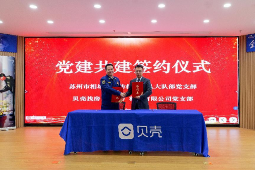 为充分发挥党建引领在基层治理中的核心作用,活动现场,贝壳找房(苏州)科技有限公司党支部与苏州市相城区消防救援大队大队部党支部共同签署了党建共建协议。双方将以“组织共建、资源共享、活动共办、服务共促”为原则,定期开展联合主题党日、消防安全宣传、应急演练等共建活动,推动党建工作与安全治理深度融合,构建“党建引领、多方联动、全民参与”的社区安全新格局。