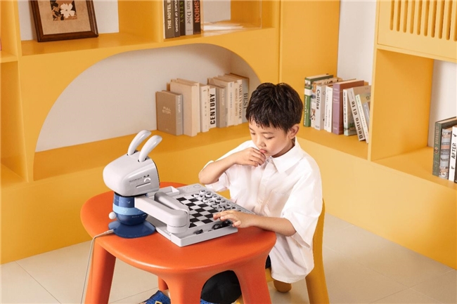 "乐观"心态塑造则通过拟人化交互实现:机械臂摆棋+语音引导+画面指引的“手眼脑”三位一体设计,营造朋友聊天般的下棋体验。此外,实体棋具既保护视力,又支持全家参与残局挑战、跨代际互动,让欢乐氛围自然融入家庭生活。