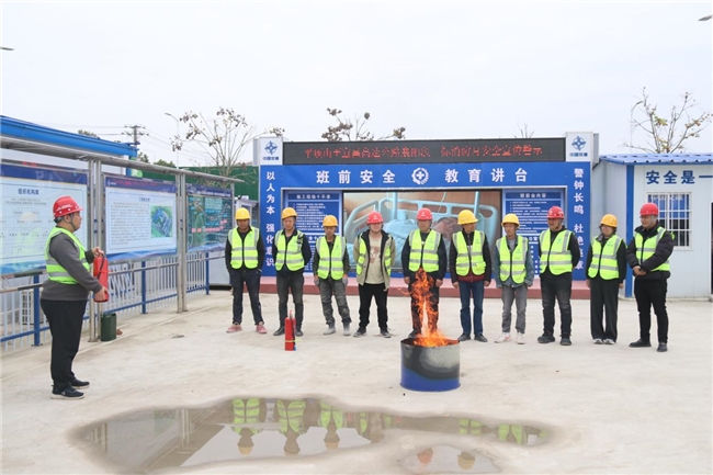 浓厚宣传氛围为安全护航。项目安全管理部通过悬挂条幅、张贴贴纸、发放传单等方式普及知识,更依托拌合站班前教育讲台,循环播放警示片,用真实案例敲响警钟,并结合施工特点讲解火灾预防、初期扑救等实用技能,让安全理念深入人心。