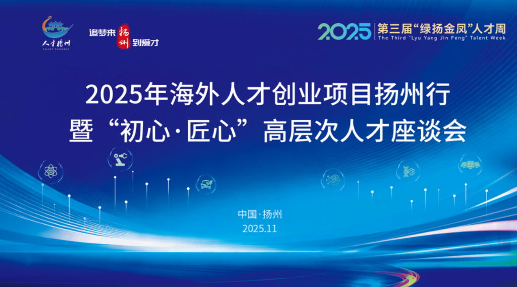 2025年海外人才创业项目扬州行暨“初心·匠心”高层次人才座谈会作为“绿扬金凤”人才周配套活动成功举办。