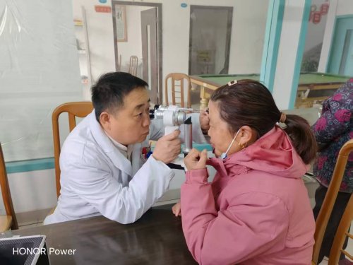 筛查现场井然有序且暖意融融。活动前期,村委会通过广播、微信群、上门通知等方式广泛宣传动员。筛查当天,村民们早早前来排队,在工作人员引导下,依次完成登记、视力初检等流程。现场划分信息登记区、基础检查区和专家诊断区,各环节衔接顺畅、高效运转。