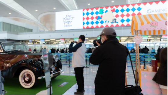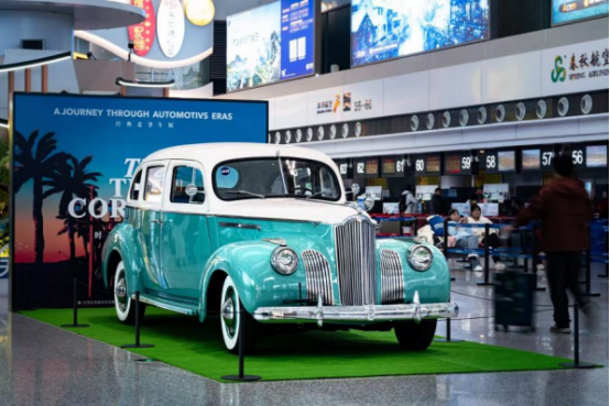 在GOLF PARK之外,GOLF高尔夫利用机场航站楼特殊的动线,在检外区公共空间打造了“时光走廊·经典印记”老爷车主题展,作为整体策展的文化延伸。