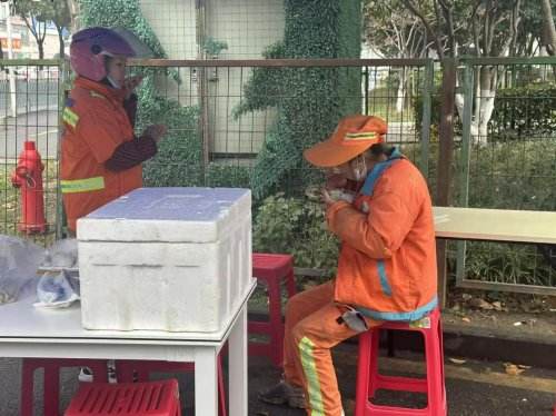 凛冬已至,寒意裹挟着街巷里的每一寸角落,玉德堂的门前却早早升腾起一股暖意。在常青街道詹家墩社区居委会的大力支持与指导下,一箱箱打包整齐的热乎盒饭码得整整齐齐,就等着街坊邻居和附近的环卫工人来领取。
