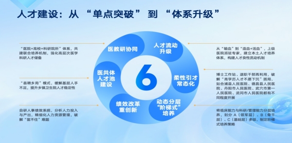 分析各主题案例发现,县域医疗发展正呈现跃升的态势:人才建设显现出了6大趋势,正在从“单点突破”到“体系升级”,陶红兵建议,引才要“活”,要主动出击优化策略,打造有吸引力的雇主品牌,探索多元招聘模式;育才要“实”,构建“医联体+规培”培养网络,优化职业发展通道。
