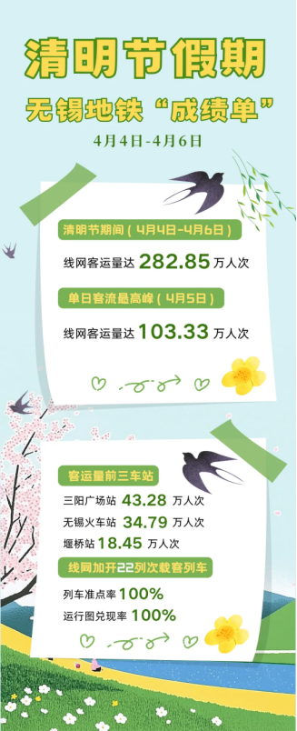 清明节期间,无锡地铁多措并举,全力守护乘客出行。根据线路特点及节假日客流分布情况,在重点区段增设备用车,做好车站大客流应对准备。针对可能出现的客流高峰,无锡地铁持续优化“一站一方案”应急预案,及时做好行车组织调整和人力调配。三阳广场站、无锡火车站、惠山古镇站等大客流重点车站采取改变扶梯方向、增开安检机等措施,减少乘客排队等待时间,提升乘客出行体验。同时,加强与邻近火车站、机场等交通枢纽的协调联动,做好客流高峰时段的乘客出行服务。