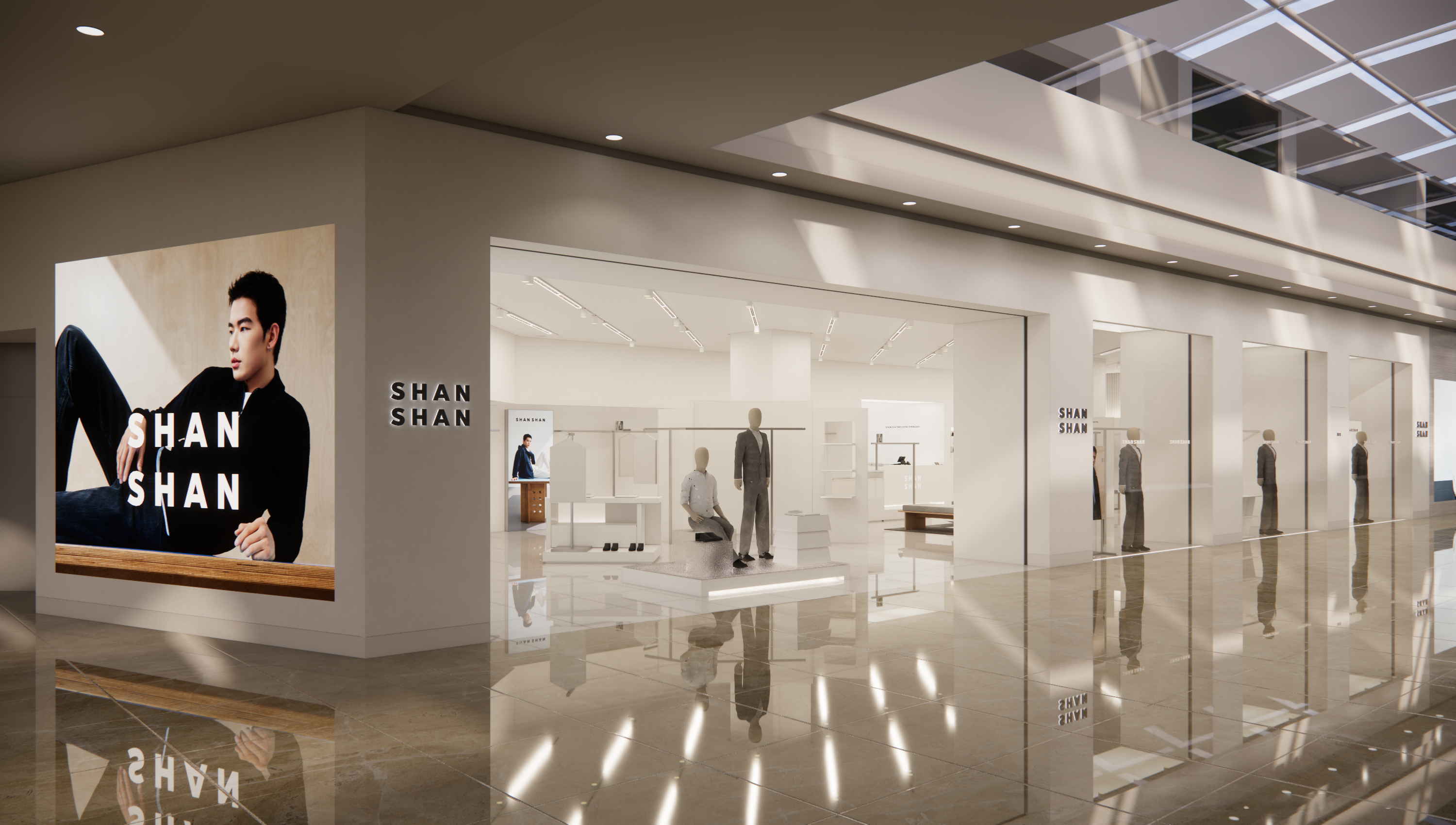 为给消费者带来更优质的购物体验,杉杉品牌同步启动全国门店形象焕新计划。次焕新以"君子而时中"为灵感源泉,重新定义了商务男装的购物环境。在新的门店设计中,杉杉摒弃了传统过于浮夸的装饰,通过精炼的线条、考究的材质与克制的色彩,营造内敛雅致的购物环境,体现精英阶层在职场与生活中的分寸感与掌控力。这一新形象不仅提升了消费者的购物体验,也塑造了杉杉作为高端商务男装品牌的精致形象,展现了杉杉品牌对商务男装本质的深刻理解。