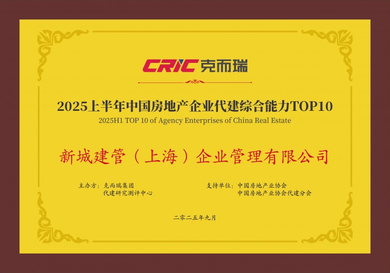 进入9月,新城控股旗下代建、代管平台——新城建管迎来收获期。9月16日,由克而瑞集团主办的“2025中国房地产企业品牌价值测评成果发布会暨第十五届房地产品牌发展高峰论坛”召开,新城建管凭借强大的综合实力和突出的市场表现,荣获“2025上半年中国房地产企业代建综合能力TOP10”“2025上半年中国房地产优秀商业代建企业”两大荣誉,旗下位于南通的和美玺悦荣膺“2025上半年全国优秀代建项目”。