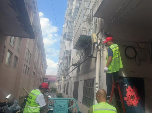 杆线整治“除蛛网”,市容市貌焕新颜。针对空中杆线杂乱、私拉乱接等“老大难”问题,南街社区联合供电、通信等部门开展“杆线整治攻坚战”。前期通过“地毯式”排查,建立含3条主干道、6个小区的杆线问题台账,标注“废弃线、低垂线、缠绕线”等隐患类型;整治中采用“捆扎归拢、入管入箱、拆除报废”三步法,对能合并的线路统一捆扎套管,对废弃线路彻底拆除,累计规整强弱电线路300余米,清理“空中飞线”隐患点31处。如今,社区空中“蜘蛛网”变“天际线”,既消除了漏电、火灾等安全隐患,也让建筑立面和街区颜值实现“双提升”。