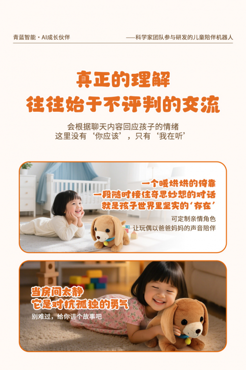感应情绪机制,当感知孩子低落,它会主动安慰;当察觉孩子兴奋,它会欢快回应。