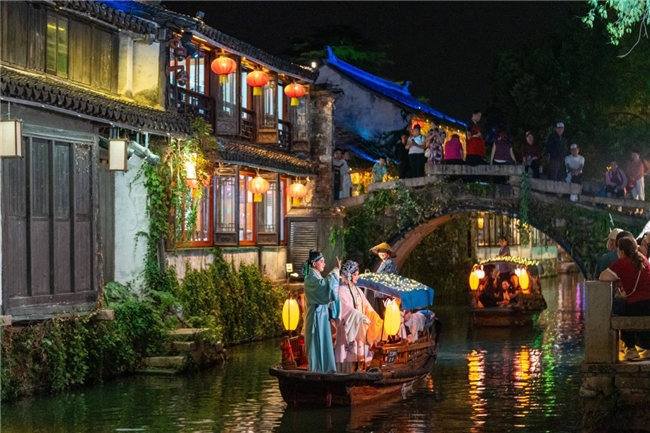 近年来,周庄通过“传统IP+潮流内容”的深度融合,成功探索了传统文化创造性转化与创新性发展的新路径,为长三角文旅产业升级提供了一个 “可听、可看、可互动、可传播”的夜经济样板。如今的周庄,正从“静态观光”迈向“动态沉浸”,打通了吃、住、游、购、娱多条休闲旅游通道,深挖江南水乡“夜文化”,培育文旅产品,引导文旅消费,激发古镇新活力。