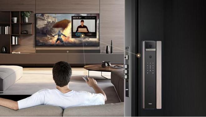 除了进出门方便,海尔金吾卫智能门锁还能深度联动全屋智慧场景,支持与电视、大脑屏、空调、照明等2W+智能组件联动。回家开门,海尔智慧家场景即可启动全屋灯光亮起、窗帘关闭,有访客按铃时,门外画面能直接推送四类屏幕,用户能随时随地可视对讲。