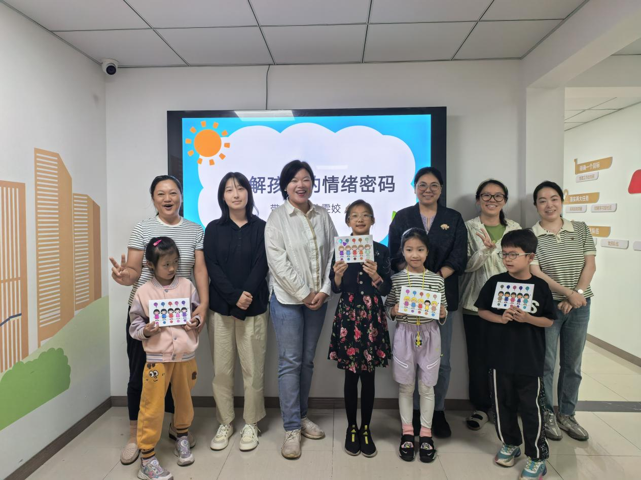 活动分两个场地同步开展,精准满足家长与孩子的不同需求。在家长专属会议室,特邀嘉宾徐雯姣老师带来专业指导。徐老师拥有南京师范大学应用心理学专业背景,同时具备 P.E.T. 父母效能训练讲师、S.E.L. 儿童社会情绪能力指导师资质,深耕儿童及家庭教育指导领域十五年,经验丰富。活动中,徐老师以生动授课的形式,为家长系统讲解儿童情绪发展基本规律,手把手传授识别孩子情绪信号的实用技巧,助力家长准确解读孩子的情绪需求。随后的交流讨论环节,家长们踊跃分享日常育儿中遇到的情绪管理困惑,在思想碰撞中相互启发;实操练习环节则让家长将所学知识转化为实际能力,有效提升应对孩子负面情绪的水平,为减少亲子冲突、改善亲子关系打下坚实基础。