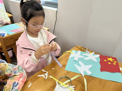 活动最后,家长王女士表示:“这样的活动既锻炼了孩子的动手能力,更在潜移默化中种下了爱国种+子,非常有意义。”
