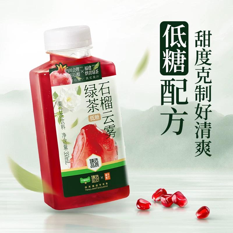 在拓展无糖茶风味的同时,果子熟了也凭借其研发实力赢得了重要渠道的定制合作。近日,果子熟了携手天猫超市“猫超甄选”频道推出限定款石榴云雾绿茶,以“真果真茶”为理念,采用低糖配方,一瓶含糖量低于一个苹果,精准契合当下健康消费需求,成为首批100个“猫超甄选千万级明星单品”之一。