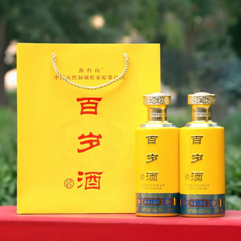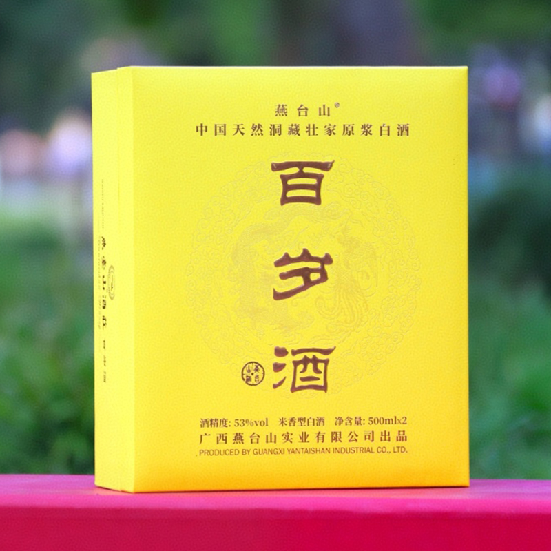 燕台山百岁酒,甄选三大核心原料匠心酿造:其一,世界十大地下暗河之一中国玄河之泉水,此水富含多种矿物质,酸碱度适中且为天然磁化小分子水,是酿酒的稀世好水;其二,选用富含铁、镁、钙等多种微量元素的优质有机大米;其三,搭配采用优质大米粉、野生草本植物、陈年优质曲丸等为原料,以祖传配方精心配制而成的酒曲。采用非物质文化遗产—“燕台山壮家白酒酿造技艺”精心酿制,然后储藏于恒温恒湿的燕台山酒庄天然溶洞中,历经10年时光洞藏陈化,最终成就其“清亮透明、香气典雅、绵甜爽净、香味协调,且洞藏风格独具一格”的卓越特质。