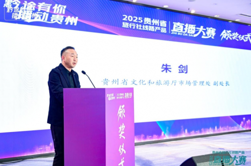 颁奖典礼现场,贵州省文化和旅游厅市场管理处副处长朱剑在致辞中表示:“本次大赛绝非一场简单的技能竞技,而是贵州文旅产业在数字化转型浪潮中,一次锐意创新、主动求变的战略性探索与实践。它成功打造了‘文旅+电商’融合的新范式,引导行业从单一的‘价格竞争’转向更具内涵的‘价值竞争’,从追逐短期‘流量’转向注重长期‘留量’,为全省旅游产业化高质量发展拓展了生动实践、注入了强劲动能。”