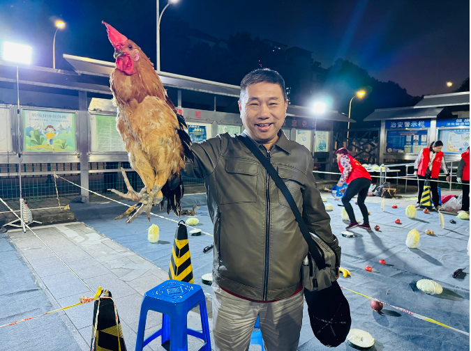 “套中啦!是活鸡!今晚就能喝鸡汤咯!”蔬菜套圈区的欢呼声格外响亮,王老伯攥着还没扔完的套圈,快步冲进围栏,小心翼翼地抱起刚套中的芦花鸡。鸡翅膀轻轻扑棱,他立刻把鸡搂得更紧,脸上的皱纹挤成了快乐的褶皱:“小时候在巷口套玻璃珠、套小玩具,现在套白菜、套活鸡,新鲜又过瘾!感觉自己一下子回到了十几岁!”旁边没套中的李伯伯看得心痒,撸起袖子调整姿势,围观的老人们跟着拍手起哄,热闹得像场童年庙会。