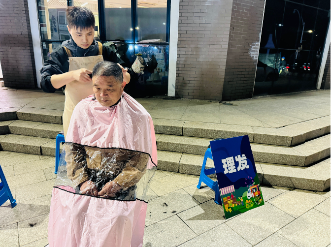 免费理发摊位前排起了小长队,理发师根据老人的脸型和需求修剪发型,理完发的刘爷爷摸了摸头发,满意地说:“精神多了!比理发店剪得还细致!”另一边的商品售卖区同样火爆,锦隆食品的零食摊位前,老人们围着性价比超高的坚果、饼干挑挑选选;金林制衣的摊位上,柔软舒适的老年外套、保暖内衣被翻找不停,“这件棉袄摸着手感好,给我老伴也带一件!”王阿姨一口气选了两件衣服,满载而归。