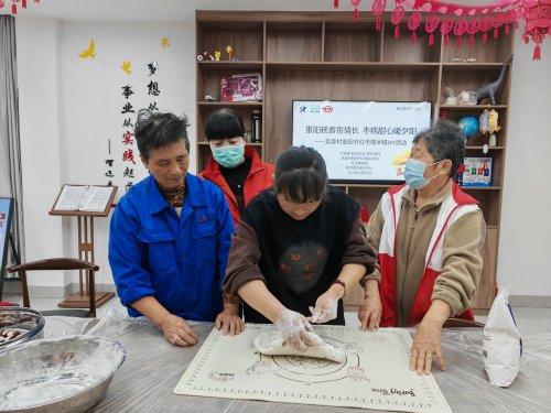 活动现场设在芙蓉村新时代文明实践站,长桌上整齐摆放着糯米粉、红枣、桂花糖等食材,社工与志愿者早已提前将红枣去核,为活动做好准备。“重阳节吃糕,寓意‘步步高升’,咱们今天做的红枣糕和糯米糍,都是老辈传下来的手艺!”72岁的村民王阿婆一边揉糯米粉,一边向围在身边的村民说到。