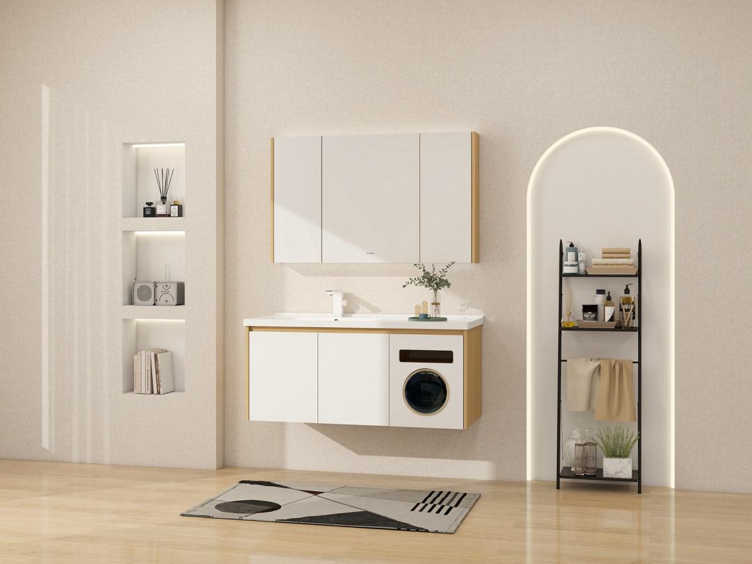 浴室柜产品同样表现卓越,采用革命性蜂窝铝合金板材质,具备卓越的防水防潮性能,0甲醛释放,环保安全。其表面采用鎏金石材质,抗污易洁;45°斜切柜门把手贴合人体工学,液压三段力阻尼铰链实现静音开合。组合式收纳系统巧妙融合抽屉与开门设计,搭配超大化妆镜面,极大提升了日常梳洗的便捷与舒适。