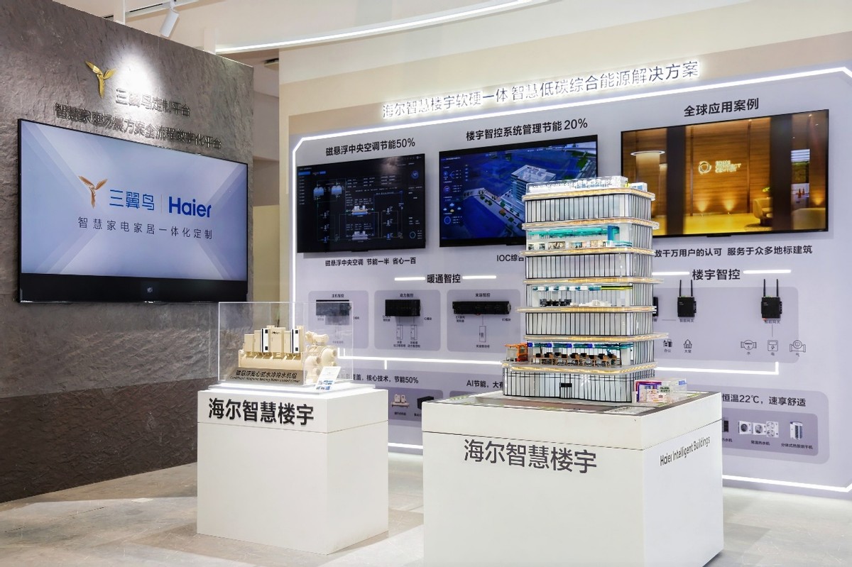 在智慧楼宇板块,由磁气悬浮中央空调、AI多联机、智控组件、智慧能源管理平台——这些硬核科技共同构成了海尔智慧楼宇的“软硬一体化”方案。与传统方案相比,该方案的最大亮点在于实现了“设备节能”与“算法节能”的双重突破。不仅在设备上实现节能50%效果,而且通过AI算法分析建筑使用习惯、天气变化、电网负荷等多维数据,让整个建筑“会思考、能决策”,再节能20%左右。