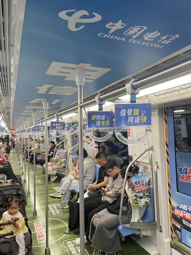 比赛期间,江苏电信在南京南站、新街口商圈等多个城市地标投放了“中国电信5G-A超级主场”的广告大屏;打造了“苏超”专属地铁应援专列;在高铁车厢、营业厅、电影院均投放了5G-A宣传片及海报,实现了5G-A与“苏超”的全城联动。在无锡,江苏电信举办了数字生活节暨苏超观赛嘉年华活动,现场设置5G-A扫码体验引导区、产品演示体验区和直播区,并邀请专家进行了5G-A小讲座,让观众零距离感受5G-A网络的快速与便捷。