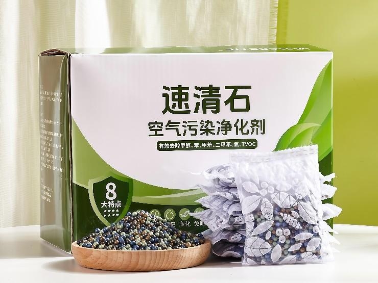 速清石采用独特配方,首创全新四色颗粒,将活性炭于多种天然矿物质相结合,融合了光触媒与银离子技术,配合高分子甲醛捕捉剂,除醛效率提升至普通活性炭的30倍。其产品不会饱和,无需暴晒换新,实现“甲醛精准吸附与分解”,解决了“用了没效果”“容易饱和带来的二次污染隐患”的难题。