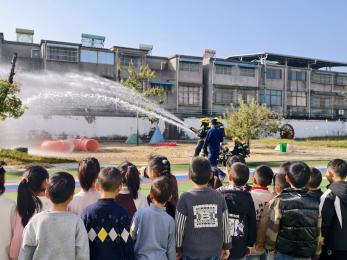 最后,消防员现场操作消防车喷水,巨大的水幕在空中划出弧线,孩子们阵阵惊呼,兴奋不已。