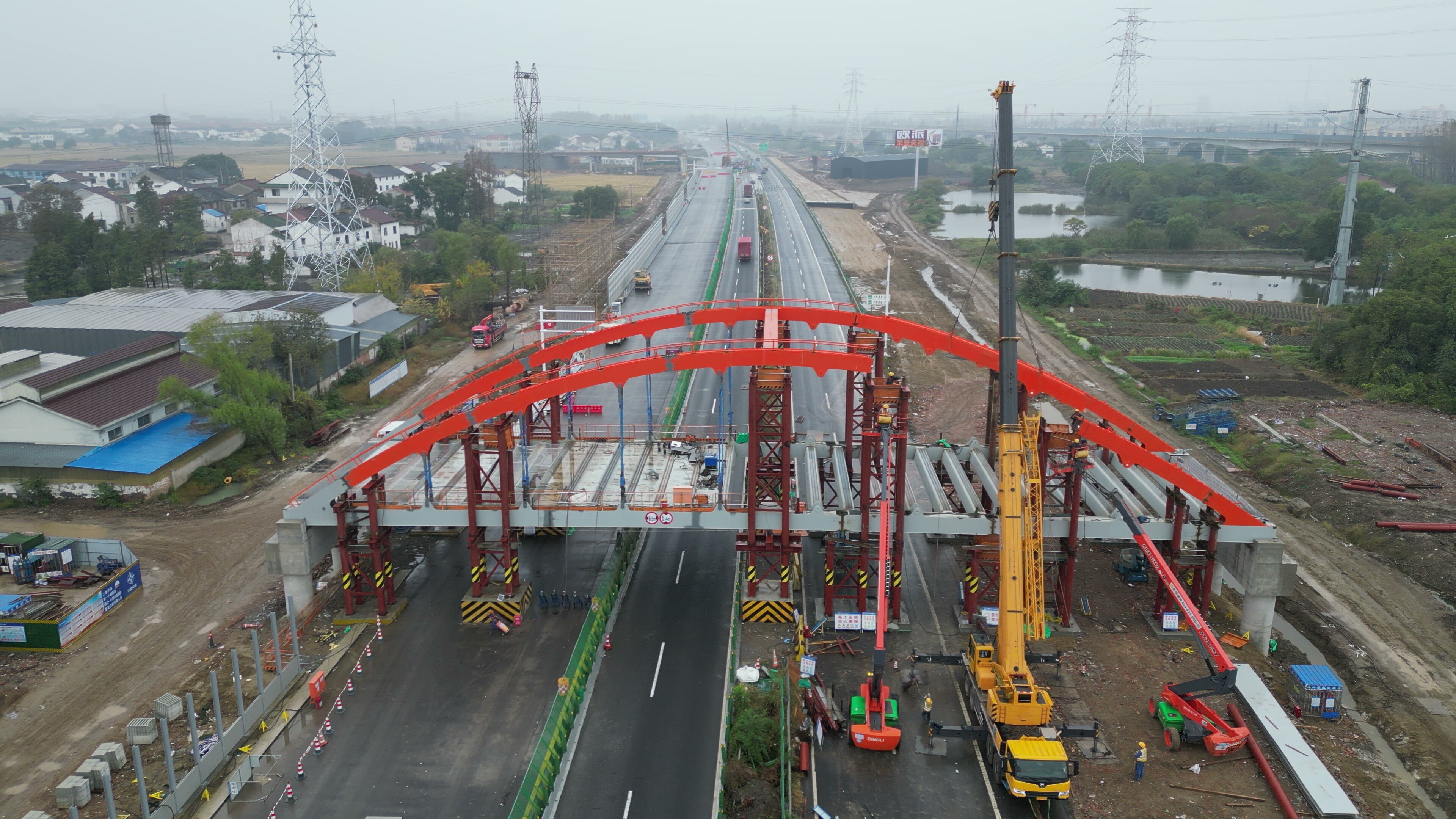 芙玉公路支线上跨桥主桥主桥成功合拢标志着沪武高速常州一标项目取得阶段性突破,全桥建成后将极大地提升道路交通通行能力和服务水平。(杨小钰)