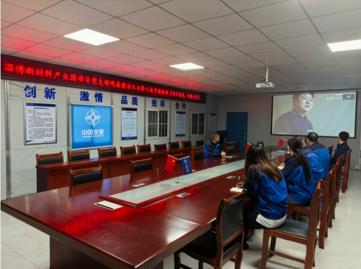 11月12日,中交一公局集团淄博产业园项目党支部集中观看了廉洁从业警示教育视频《渭水清风,润廉无声》。