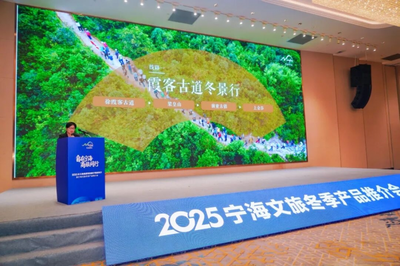 会上发布了2025宁海冬季文旅产品及配套政策,推出霞客古道冬景行、温泉暖冬疗愈游、古村渔港风情记、文化艺术沉浸游四条精品线路,以及对宁海拓展旅游市场客源的相关政策奖励和宣传政策奖励,其中,市场拓展奖励政策包含会议奖励、团队奖励、电商平台奖励、研学奖励四方面。