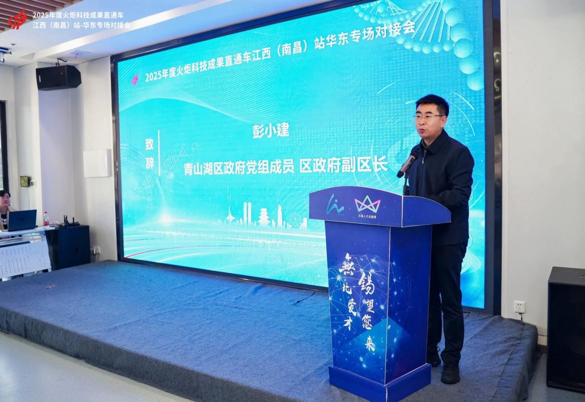 彭小建从区位交通、产业基础等维度全面介绍青山湖区的发展底蕴与综合优势。希望以此次活动为契机,推动更多科技成果在区内落地转化。