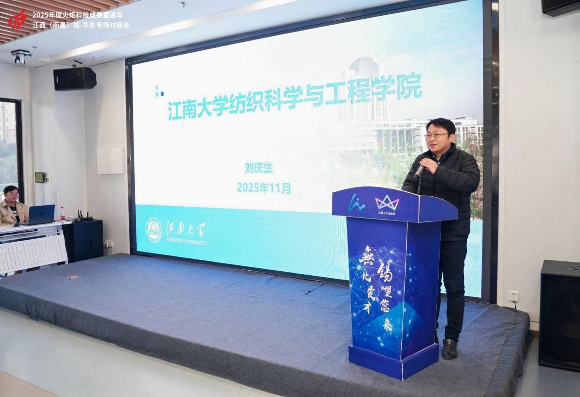 11月13日,以“智汇新动力 聚势创未来”为主题的2025年度火炬科技成果直通车江西(南昌)站华东专场对接会在无锡隆重举行。活动由工信部火炬中心、江西省科技厅、南昌市人民政府主办,南昌市科技局与青山湖区人民政府联合承办。南昌市科技局党组成员、副局长胡辉勇,青山湖区政府党组成员、副区长彭小建出席并致辞;江南大学纺织科学与工程学院副院长刘庆生做主题分享。来自政府部门、高校、科研院所及企业代表70余人参加活动,共话跨区域科技成果合作新机遇,助力南昌经济高质量发展。