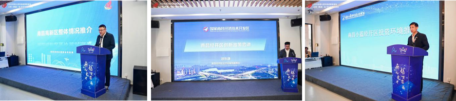 南昌高新区、南昌经开区、南昌小蓝经开区科技部门代表进行了政策推介,详细介绍了各自在创新创业、产业扶持、人才引进、民生交通等方面的优惠政策和发展机遇,让参会人员对南昌整体营商环境、科技创新生态环境的现状、优势和发展有了更清晰的认识。