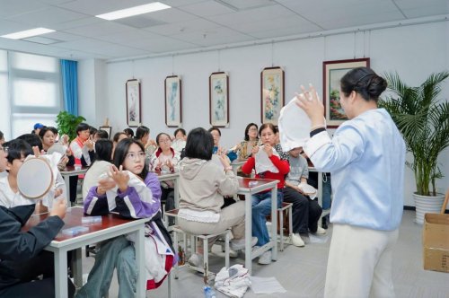面对一幅栩栩如生的刺绣小猫,一位学生惊叹道:“我完全无法想象这不是照片,而是一针一线绣出来的!”在绣娘的指导下,同学们亲手体验了苏绣的基本技法,感受这项非物质文化遗产的精妙绝伦。