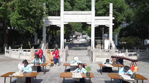 养心斋的教育,始终追求“技法之上有文化,笔墨之中有精神”。书画院深知,传统书画的核心不仅是技艺,更是其承载的文化内涵与人文精神。因此,每一堂课都成为文化传播的窗口:书写“福”字时,讲解春节贴福的民俗寓意;临摹《兰亭集序》时,分享王羲之的文人风骨;创作水乡题材作品时,讲述兴化的历史典故与板桥精神。教师们还会定期组织“古画赏析会”“国学诵读会”,带孩子们走进书画展览、拜访本土老艺术家,让孩子们在耳濡目染中感受传统文化的博大精深。这种文化浸润,不仅提升了孩子们的艺术审美,更让他们在心中埋下了文化自信的种子。有学生感慨:“在这里,我不仅学到了技艺,还从老师和传统文化中学会了‘中正平和’的为人处世之道。”从理解汉字背后的文化密码,到领悟书画中的人生智慧,再到热爱家乡的文化传承,孩子们在养心斋完成的,是一场跨越古今的文化对话与精神成长。