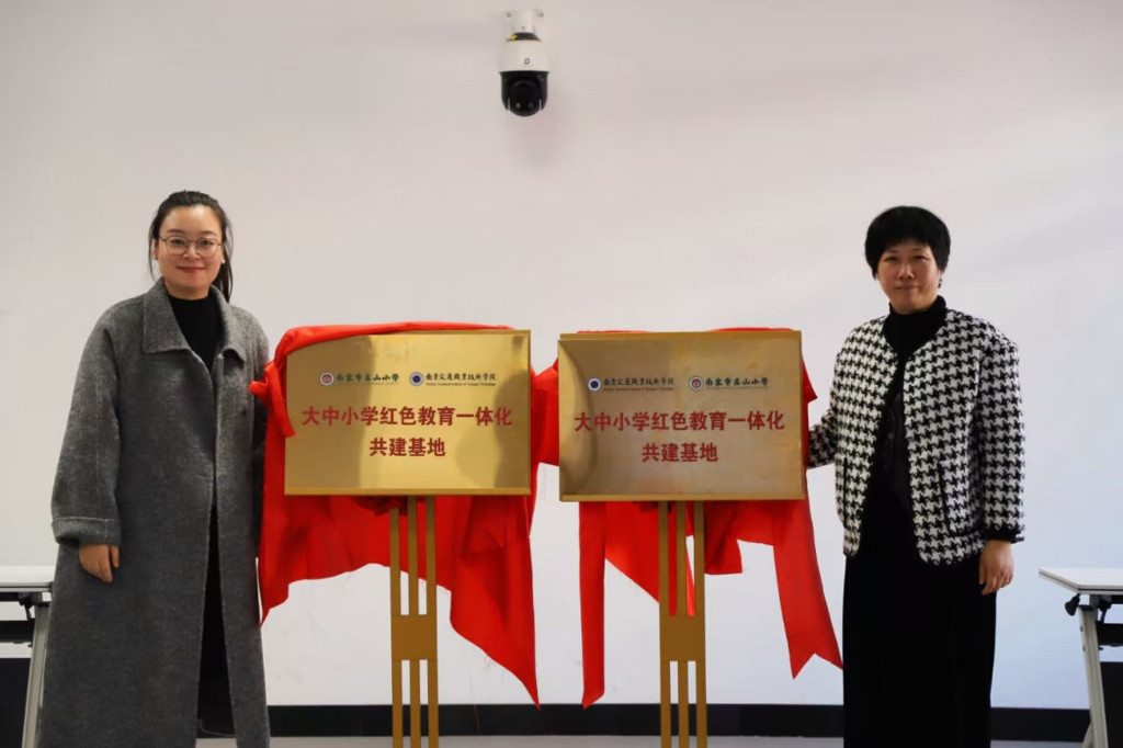 建筑工程学院党总支书记张丽君与东山小学大队辅导员徐欣共同签署了大中小学红色教育一体化共建协议、并为此项合作揭牌。签约揭牌仪式后,东山小学大队辅导员徐欣讲话,对共建合作表达了美好的祝愿与期待。