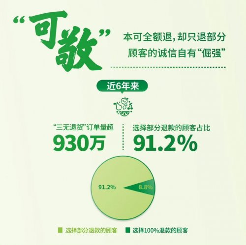 16年,累计退货1865万单,退款总额超7.9亿元——这组数字背后,是中国消费者与百果园用信任共同写就的故事。10月30日,百果园发布以“16年数据说‘可敬’中国人”为主题的“三无退货”数据长图。数据显示,尽管百果园门店数量从最初的百家增至数千家,服务体量增长近30倍,累计服务顾客超过22亿人次,但年退货率却始终稳定在0.8% 。近六年来,百果园“三无退货”订单量超过930万单,其中91.2% 的顾客选择了仅退款部分金额,而非全额退货。这一数据,不仅客观反映了中国消费者的诚信底色,也成为百果园与消费者之间构建长期信任的一个生动样本。