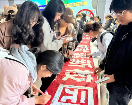 在A楼举办的“签名答题活动”吸引了众多师生踊跃参与。活动现场,印有“不食人间‘烟’火,成就清新校园”标语的红色横幅格外醒目,同学们手持马克笔,郑重签下姓名,并写下对控烟禁烟的感悟。知识问答环节气氛热烈,活动采取抽签答题形式,题目涵盖烟草危害、禁烟政策与健康常识等内容。面对“二手烟的危害”“公共场所禁烟法规”等问题,大家准确作答,主持人针对易错题目进行了补充讲解,进一步阐释吸烟对身心健康的长期影响。现场互动频繁,同学们在轻松的氛围中加深了对禁烟必要性的理解。