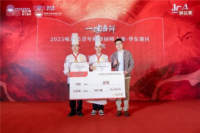 味达美餐饮服务事业部总经理贾晓瑾、味达美餐饮服务事业部品牌总监李欣、华东赛区裁判长于学荣为现场获奖选手颁奖。