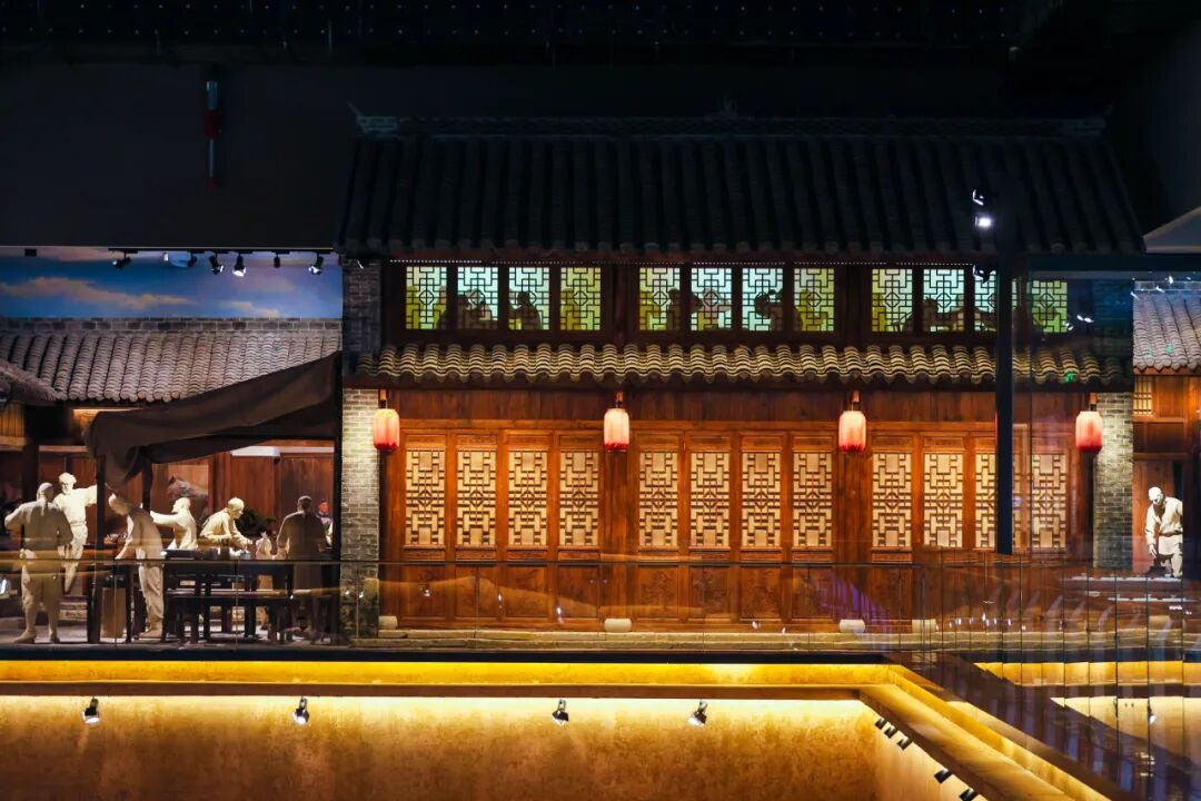 在这里,历史并非静止的标本。口子窖创新打造“三维叙事”体验:地下原址封存考古现场,地表复原明清酒坊生产动线,空中通过数字交互模拟酿酒微生态,将静态的遗址转化为可进入、可触摸、可共鸣的文化空间。展示馆通过现代展陈与沉浸式体验,将“前店后坊”的格局、四大槽坊的兴盛、并排双灶的匠心,转化为一幕幕生动的酿造场景。游客不仅能直观感受“大国兼香”的酿造现场,更能读懂一瓶好酒背后跨越数百年的匠心坚守。