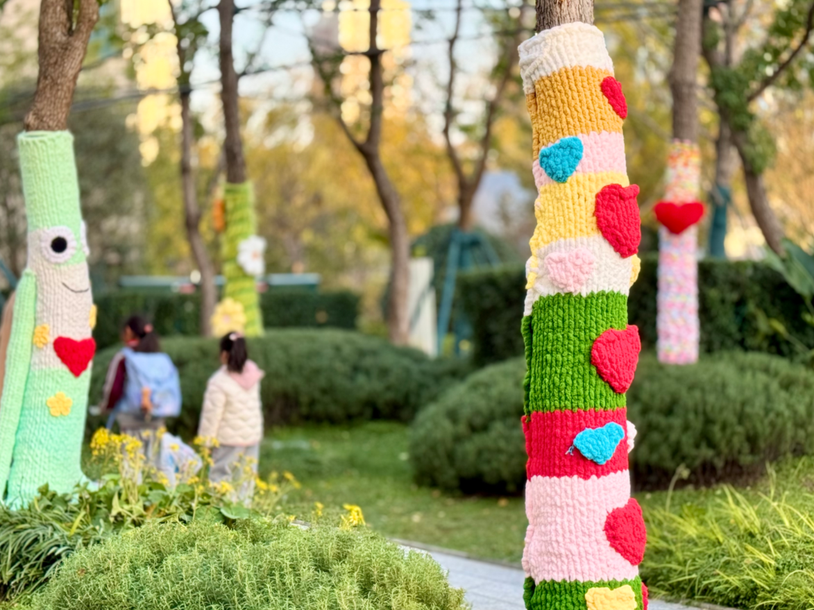 在沁苏禧,惬意的生活就藏在每一处精心设计的“小心思”里!玺植园的树木披上了卡通造型的手工针织毛衣,色彩鲜艳夺目,不仅为秋冬园区注入满满童趣,更贴心守护树木抵御寒风,随手定格便是引爆社交平台的网红大片。网红路牌摒弃生硬提示,以“想你的风吹到了玺植园”的温暖标语指引,悄然化作园区一道亮丽风景线。物业巧妙将“好看”“好用”“暖心”融入每个小区环境,让每一次漫步都洋溢着治愈心灵的幸福感。