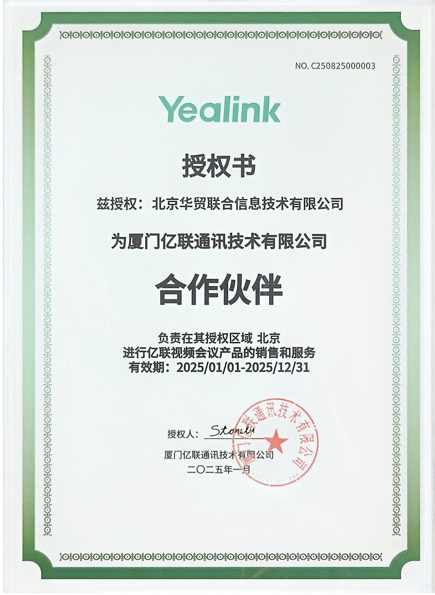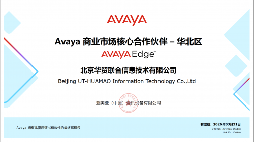 (北京,2025年12月12日)—— 北京华贸联合信息技术有限公司今日正式宣布,公司已连续多年成为Avaya商业市场核心合作伙伴,并获颁全新的Avaya宝石级(Edge_Sapphire)合作伙伴授权证书(证书代码:AV-2026-156440)。这标志着华贸联合在商业通信市场的专业实力和服务能力获得权威认可。