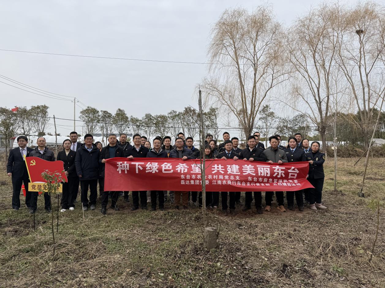 春风拂万里,奋斗正当时。在第48个植树节到来之际,为深入践行绿色发展理念,强化党建引领作用,深化党建共建工作,江南农村商业银行东台支行党支部携手共建伙伴东台市农业农村局党总支、东台市应急管理局党委、磊达集团党委、东台市五烈镇司法所走进五烈镇美丽乡村,共同开展“种下绿色希望 共建美丽东台”义务植树活动。各单位党员干部、优秀共产党员、先进工作者代表齐聚一堂,以实际行动打造党员先锋林,播下初心的种子共迎建党105周年华诞。